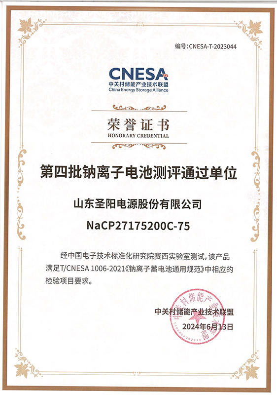 中山圣阳股份荣登“全国第四批钠离子电池测评通过单位”榜单